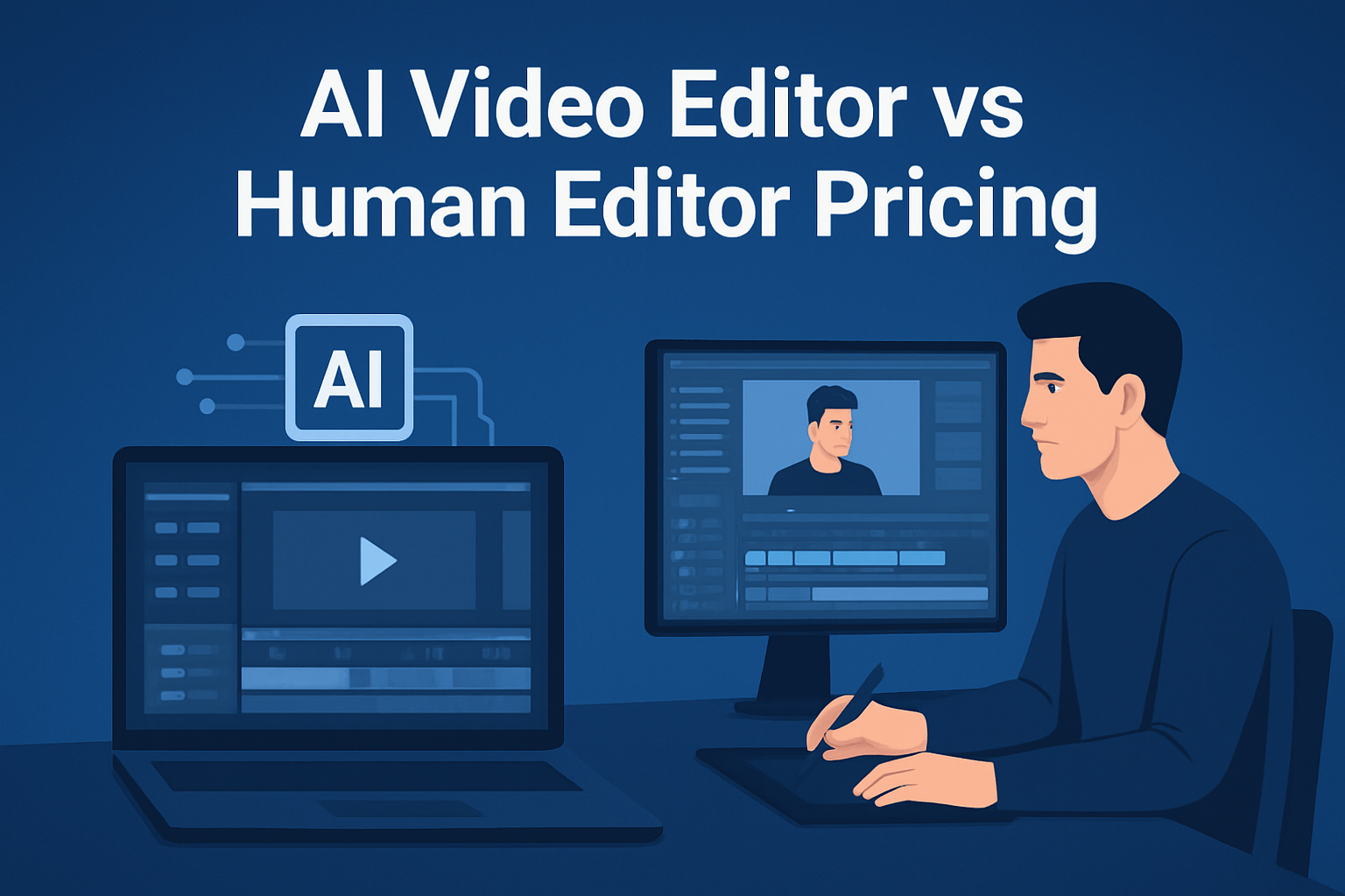 AI editors compress workflow by automating repetitive tasks (draft cuts, subtitles, aspect-ratio previews, thumbnail variants) and storing reusable assets locally. Human editors add judgement, shot selection nuance, and bespoke timing. So the lower-per-asset cost of an AI editor comes from reduced labor hours and less tool switching; the higher cost of a human editor is the studio-grade craft you can’t fully automate.