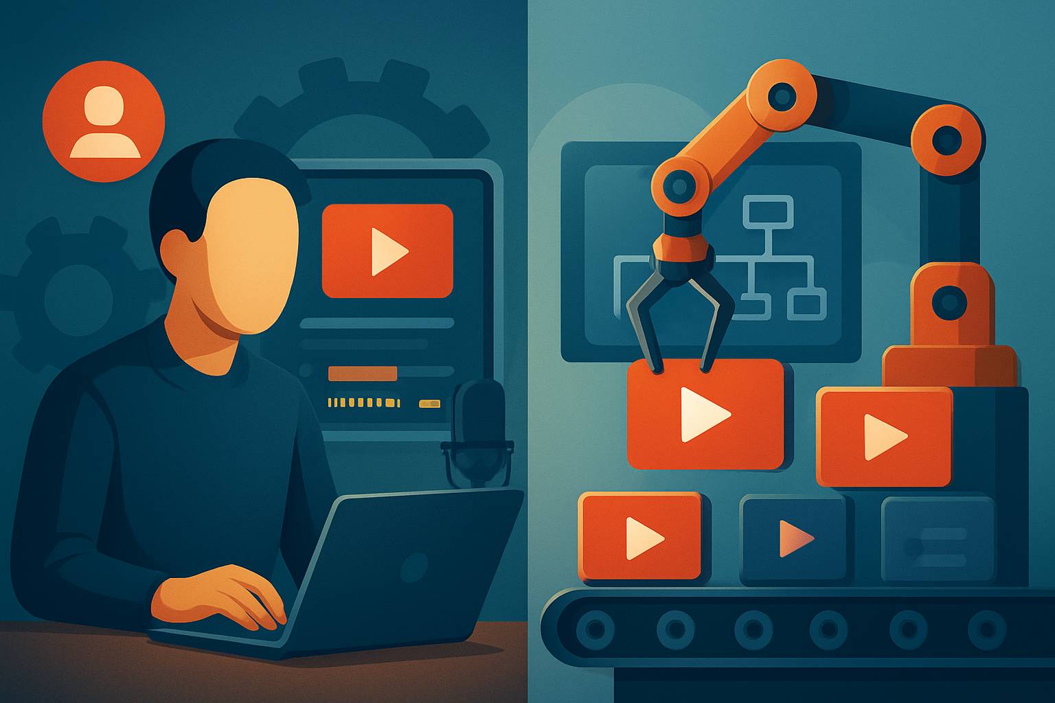 - YouTube Automation: a business model and operations approach that scales channels by automating or outsourcing the steps of production, publishing, and sometimes optimization. Teams, SOPs, batch work, and tools are combined to treat channels like systems.