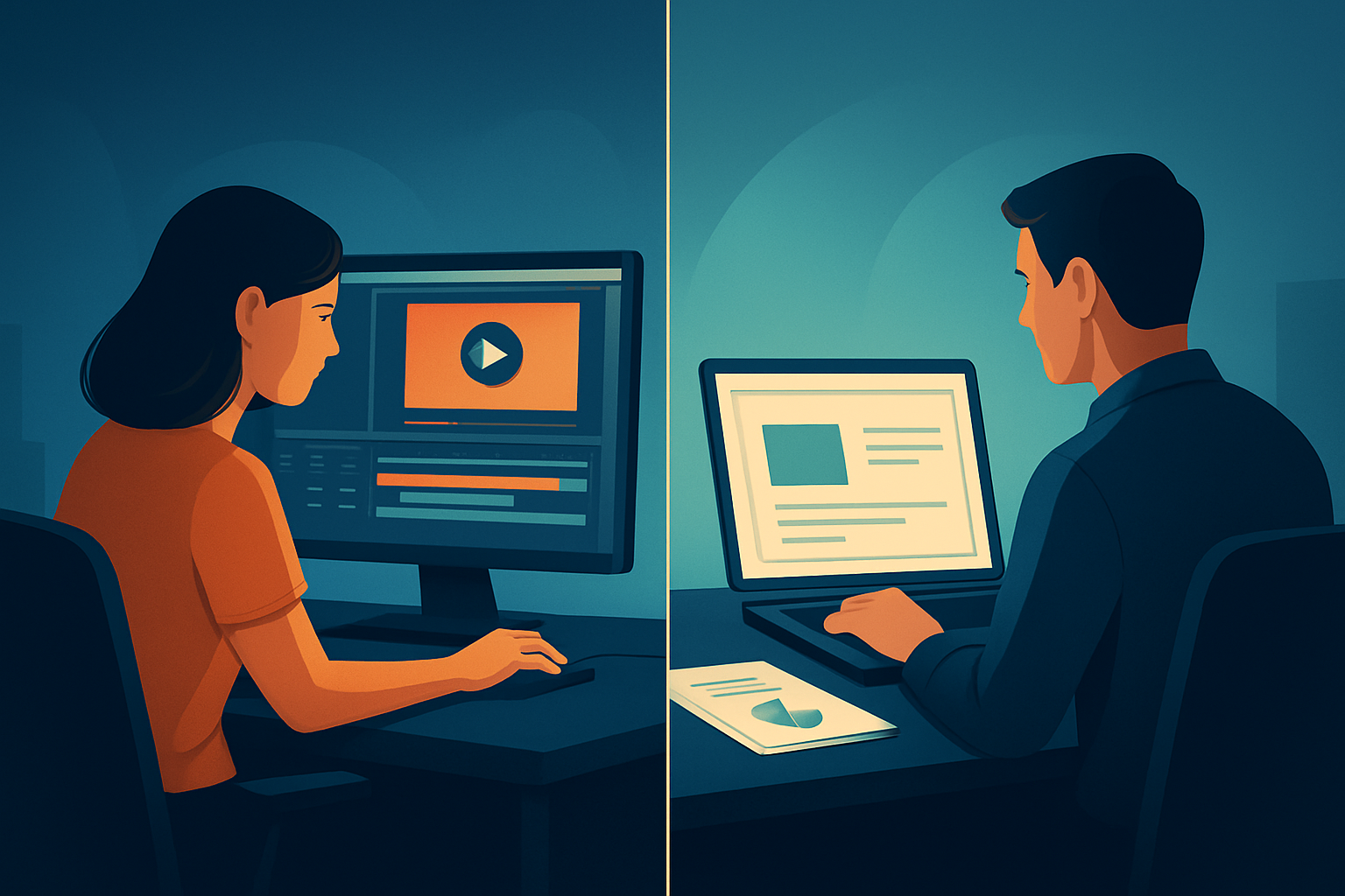 - Slide Decks: Start from slides and speaker notes. Creation is slide-by-slide and often manual placement of text and images.